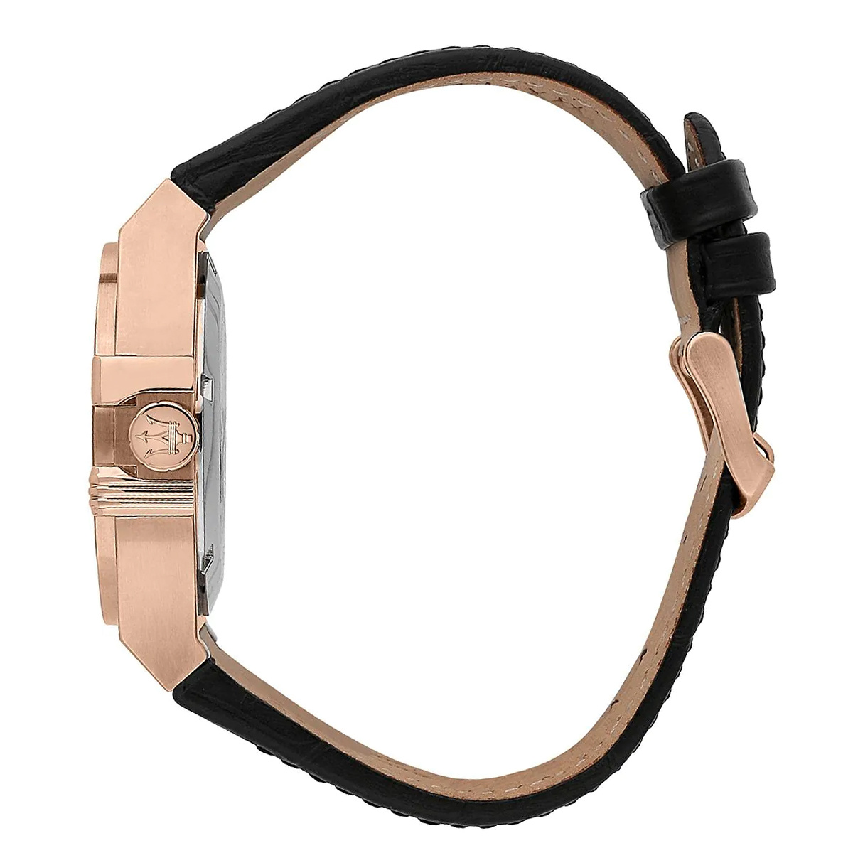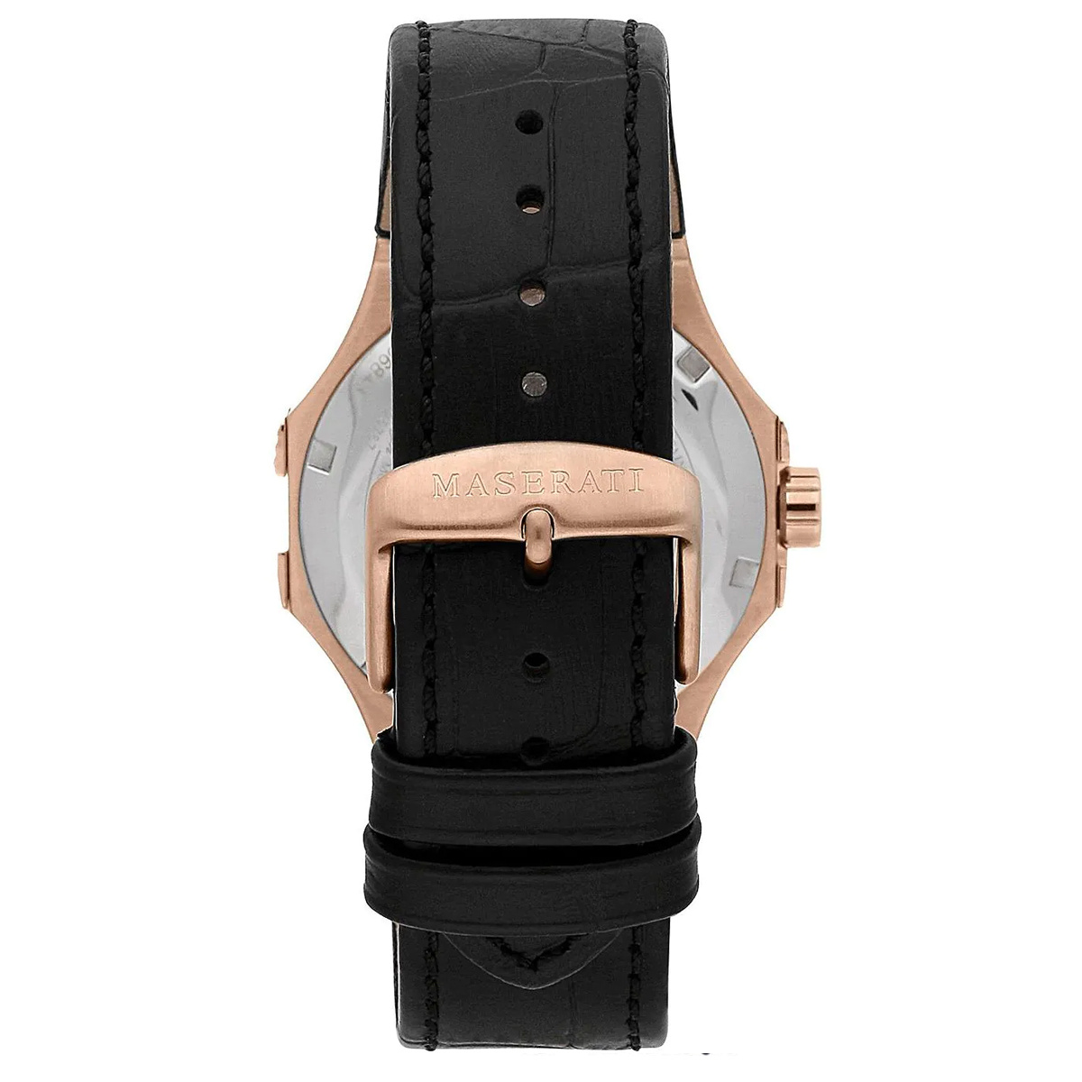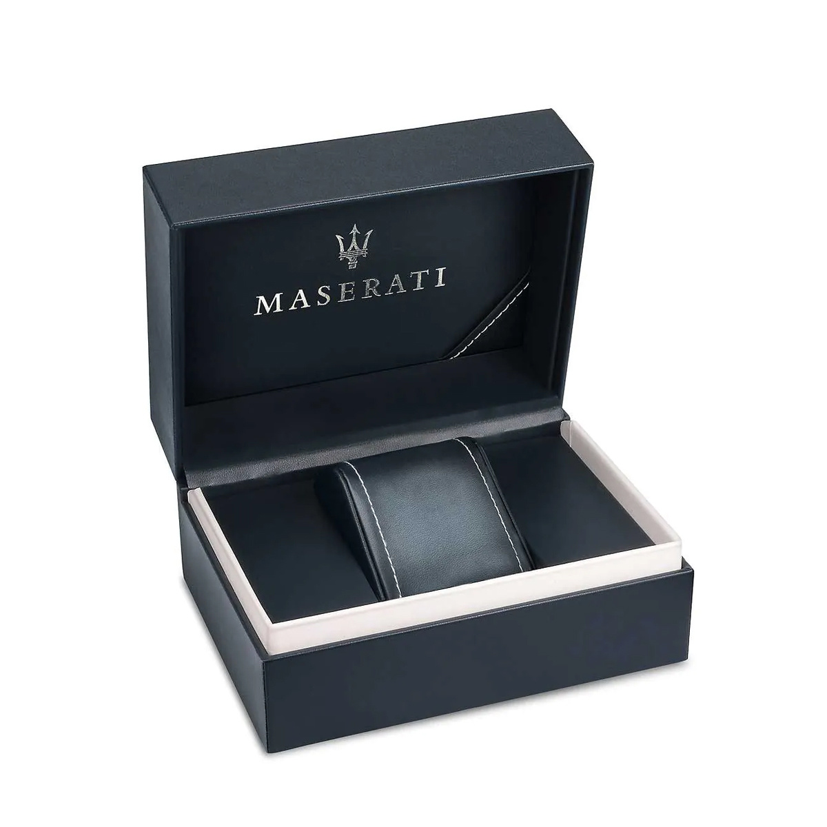 Das Herzstück dieses Zeitmessers ist ein Automatik Uhrwerk, das, wie für MASERATI Uhren üblich, eine präzise Zeitmessung garantiert und folgende Funktionen bereitstellt: Minute, Sekunde, Stunde.